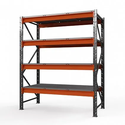 Секция приставная стеллажа металлического Оптима, 3000x1530x785 мм. Полки: 4 шт. без настила