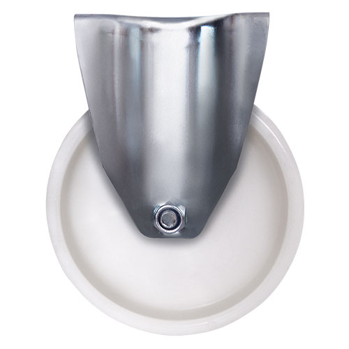 Нейлоновое колесо с неповоротным кронштейном имеет диаметр 200 мм. Для крепления предусмотрен кронштейн из оцинкованной стали с платформой размером 115x141 мм. Межосевое расстояние 80x105 мм. Высота с кронштейном 242 мм. Обод шириной 50 мм равномерно распределяет нагрузку. Грузоподъемность 230 кг. Устанавливается в торговое, складское оборудование, медицинские и покупательские тележки.