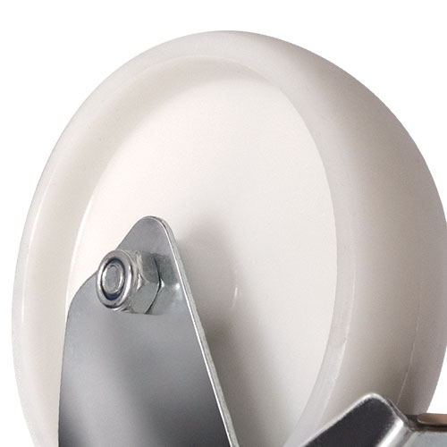 Поворотное цельнолитое колесо из полиамида с креплением под болт диаметром 125 мм. Кронштейн из оцинкованной стали с удобным ножным тормозом. Обод шириной 37.5 мм обеспечивает устойчивость во время движения. Диаметр отверстия под болт 12 мм. Высота опоры с кронштейном 157 мм. Грузоподъемность 160 кг. Предназначено для эксплуатации в помещении и на улице на ровных и гладких поверхностях. Устанавливается в медицинские тележки, технику и оборудование для пищевой промышленности и т.д.
