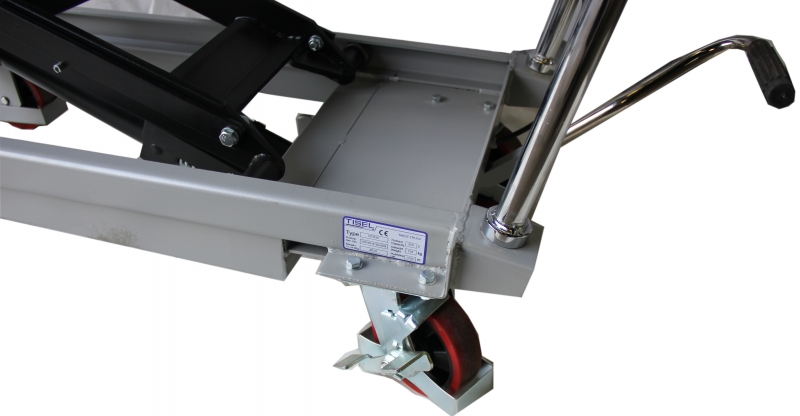 Управление передвижными подъемными столами TISEL TECHNICS осуществляется при помощи удобной, эргономической хромированной рукоятки. Подъем платформы осуществляется при помощи ножного манипулятора с прорезиненным, противоскользящим покрытием. Максимальный контроль за спуском осуществляется при помощи функционального рычага управления, расположенного на рукоятке.