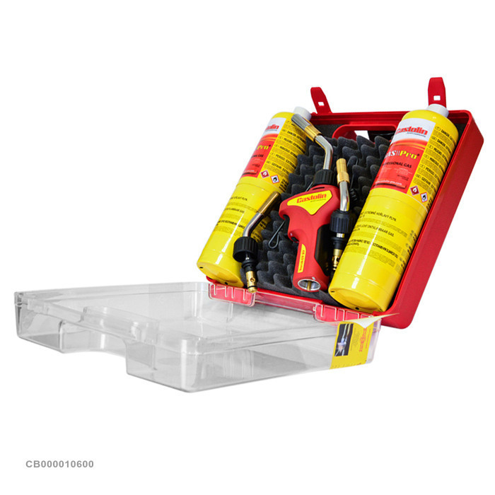 Состав набора: 1 горелка СТ 27, 3 наконечника, 2 баллона GASPro, 1 металлическая подставка.