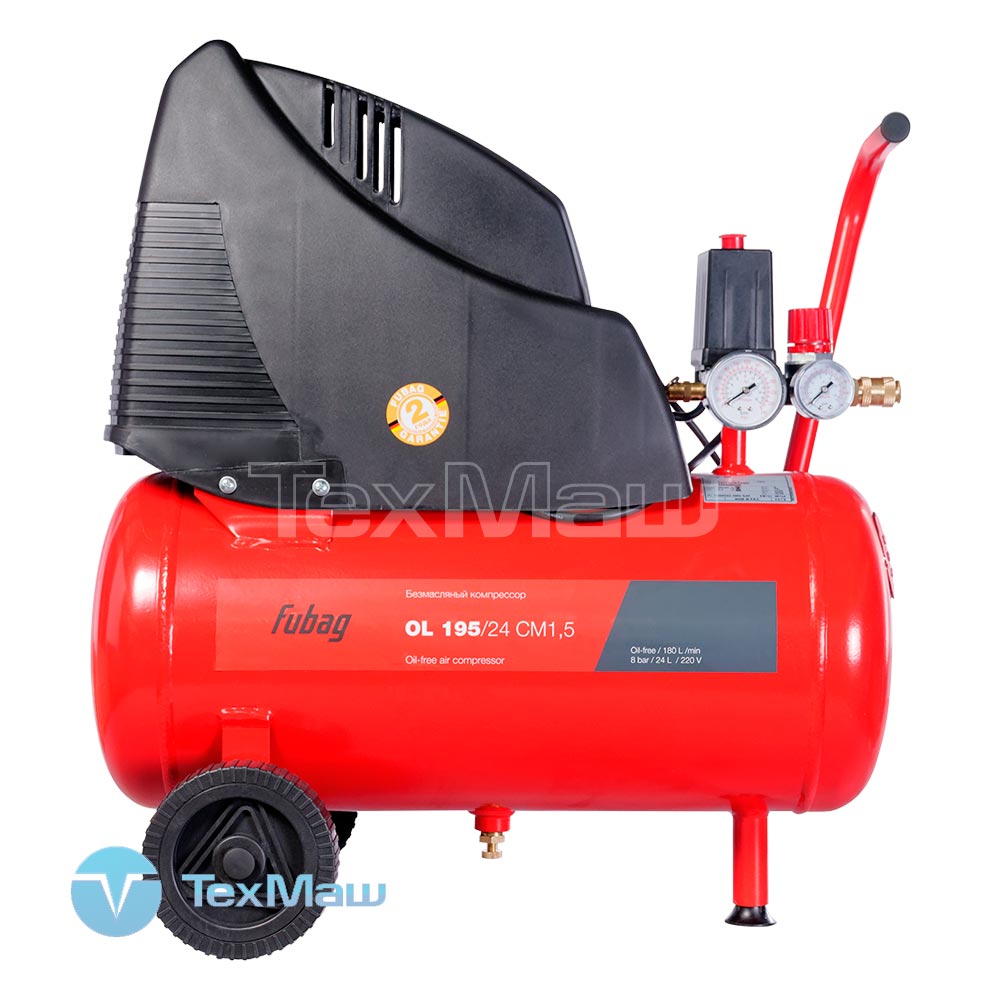 Компрессоры FUBAG OL 195/24 CM1,5 — компактные поршневые установки для применения в тех областях, где имеется небольшая потребность в сжатом воздухе. Это некрупные производства, обслуживание автотранспорта, коммунальная сфера и прочие. Данные безмасляные коаксиальные агрегаты способны обеспечивать 180 литров сжатого воздуха в минуту при работе на предельно допустимом давлении 8 атм. Мощность такого устройства составляет 1,5 кВт. Оборудование оснащено системой автоматической защиты от перегрева.