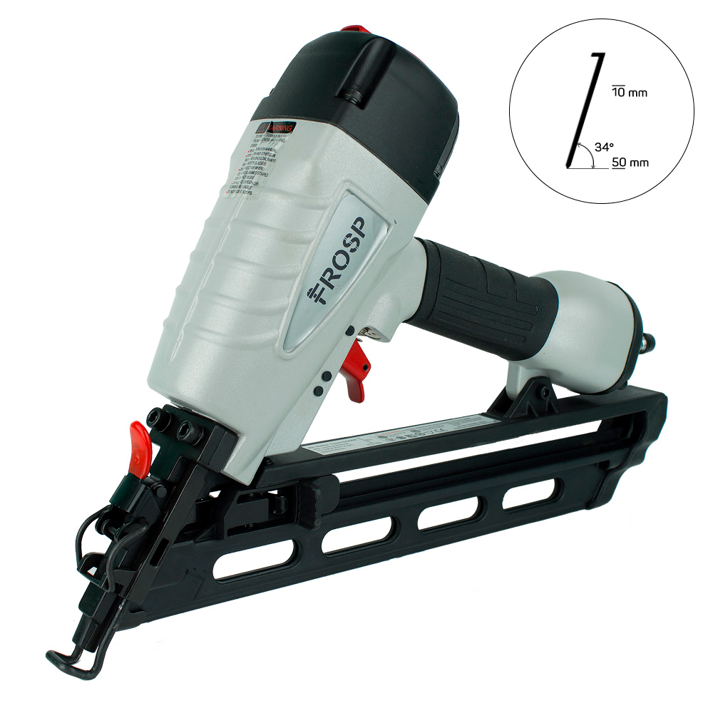 FROSP-6434 – реечный гвоздезабивной пистолет. Предназначен для ремонта и изготовления деревянных конструкций. Применяется для строительства, настила полов, создании мебели, каркасов, паллет, подиумов. Бьёт гвоздь длинной 32-64 мм, диаметром 1,8 мм с ёмкостью магазина - 100 гвоздей.