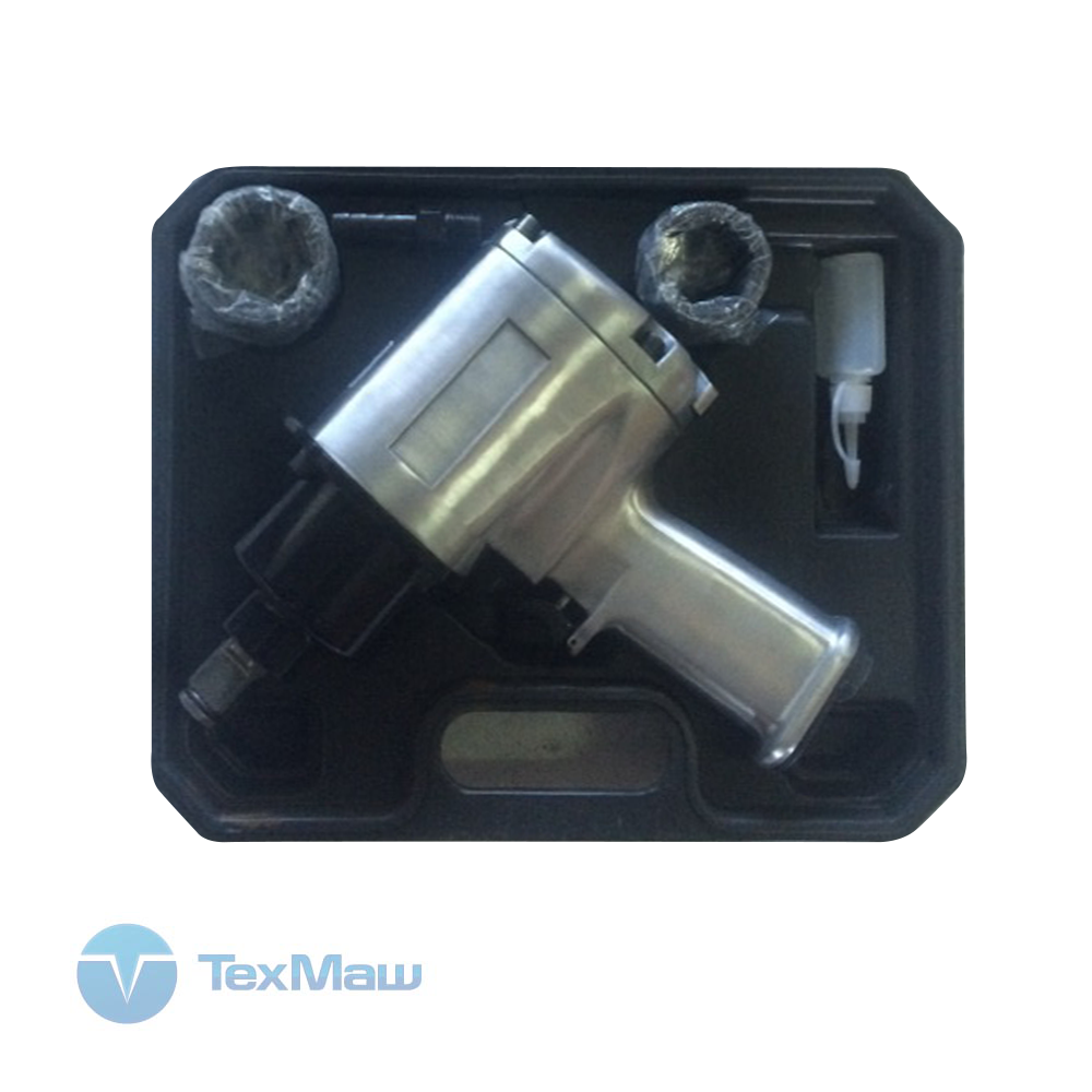 Пневмогайковерт этой модели обеспечивает момент затяжки 1300 Нм. Имеет оптимальный вес для своей производительности. Компактен и удобен в применении, дополнительное удобство обеспечивает рукоятка эргономичной формы. Инструмент реализуется в кейсе с комплектующими. В комплектацию входят головки разного размера, удлинитель, штуцер и масленка.